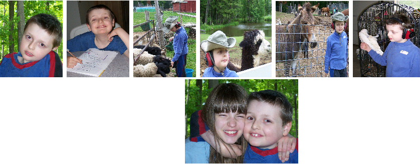 Zachary is just completing his second grade curriculum (home schooled). My biggest challenge is keeping him focused. If I'm not right there with him, he has a very difficult time "moving on" with his work even though he knows the answers. He is very intelligent and has a fantastic memory. He enjoys learning new things... like cursive writing. That "all or nothing" is still there though in so many things... he did not like "mixing" lowercase and uppercase letters... wanted them one way or another... until I told him letters are just like trucks that can be mixed up... sometimes they have small wheels on the front and big wheels on the back and letters are just the same... I took him to the zoo recently... he enjoyed seeing all the animals. When Zachary was 2 years old, we had taken him to the Brookfield Zoo near Chicago and Zachary couldn't even see the elephant just in front of him because he was so busy focusing on a squirrel twirling a nut just by the stroller. The "spinning nut" had taken all his attention and made him miss the obvious just in front of him. Thus, it is truly nice to see him enjoying the animals now. We have 3 dogs and a cat and he loves them too. By the end of our day at the zoo, I could see he had enough and was ready to go as his attention was no longer on the animals...although the black bear stuck in a tree was very captivating to him :o) ... After 3 hours, it was time to go home... with autism, you have to always keep in mind "how much is enough" and take your cues from the child. Zachary still likes to wear his earmuffs in loud, strange places... but most of the time, he has them off... Zachary also adores his older sister and loves to play with her. She has truly been a blessing in his life. Zachary has also discovered "other children" at the playground and is finally initiating wanting to play with them. For more on Zachary's progress - especially as it relates to speech development, etc., I encourage you to read the 4 books I have written and posted in full on this website. Book 4 is on language specifically and I think parents will find that one especially informative in helping to develop speech in these children. Book 3 and the paper on Redefining The Role of Insulin (implications for metal toxicity) are also "must reads" for those interested in understanding the issues. Posted June 17, 2005 Zachary - Age 7 (Jan. 2005)