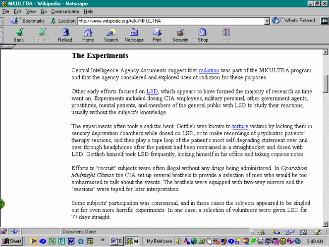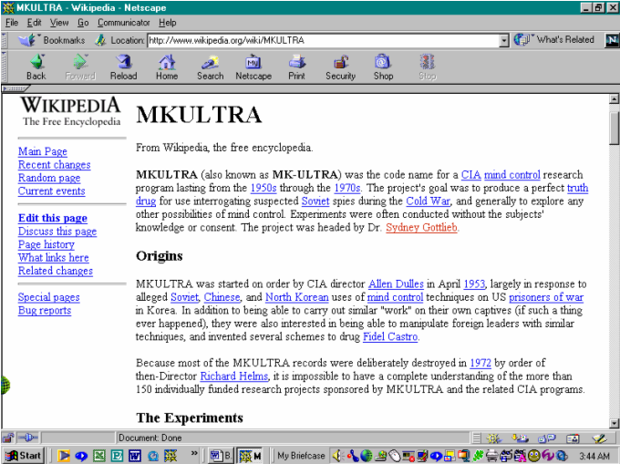I had selected what appeared to be one of the most “objective” sources discussing MKultra on the Internet – an online encyclopedia.